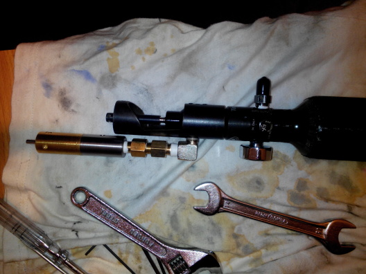 Malo by to vyzerat ako tu http://www.gatewaytoairguns.org/GTA/ind ... ic=35670.0 ten block kit bude z QB mal by pasovat.Je na nizzsi tlak do cca 900psi.Paintball flasa a CO2 maju okolo 800-850 psi vystupny tlak takze by malo stacit.