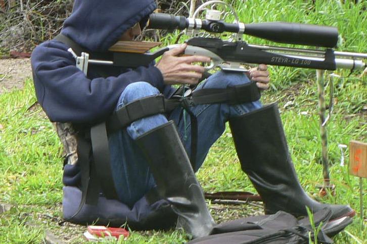 Z obrazkov vidno, ze strelec si natiahne na seba akesi remene, do ktore sa mu operaju o chrbat a do ktorych si oprie kolena. Tymto si navzajom fixuje kolena a chrbat a urcite ziskava vyhodu. Po chvili googlovania som tomu nasiel aj nazov - "body bench" a tu sa da aj kupit: http://www.airgunsofarizona.com/PrimalG ... #BodyBench