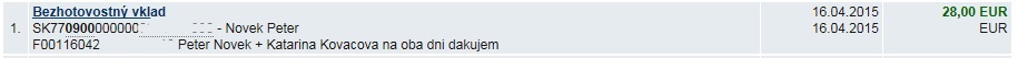 Pre organizátora je to určite super. Nemusím sedieť pri stole a čakať komu sa uráči prísť zaplatiť štartovné aj napriek niekoľkým výzvam. Len som zabudol na jednu vec a je to aj pomôcka pre ostatných ktorí sa rozhodnú pre tento spôsob. Kto ešte nezaplatil prosím ako variabilný symbol uveďte 05062015. Podľa tohto variabolneho symbolu budem filtrovať platby na základe toho si viem urobiť výpis a budem mať všetkých po kope.