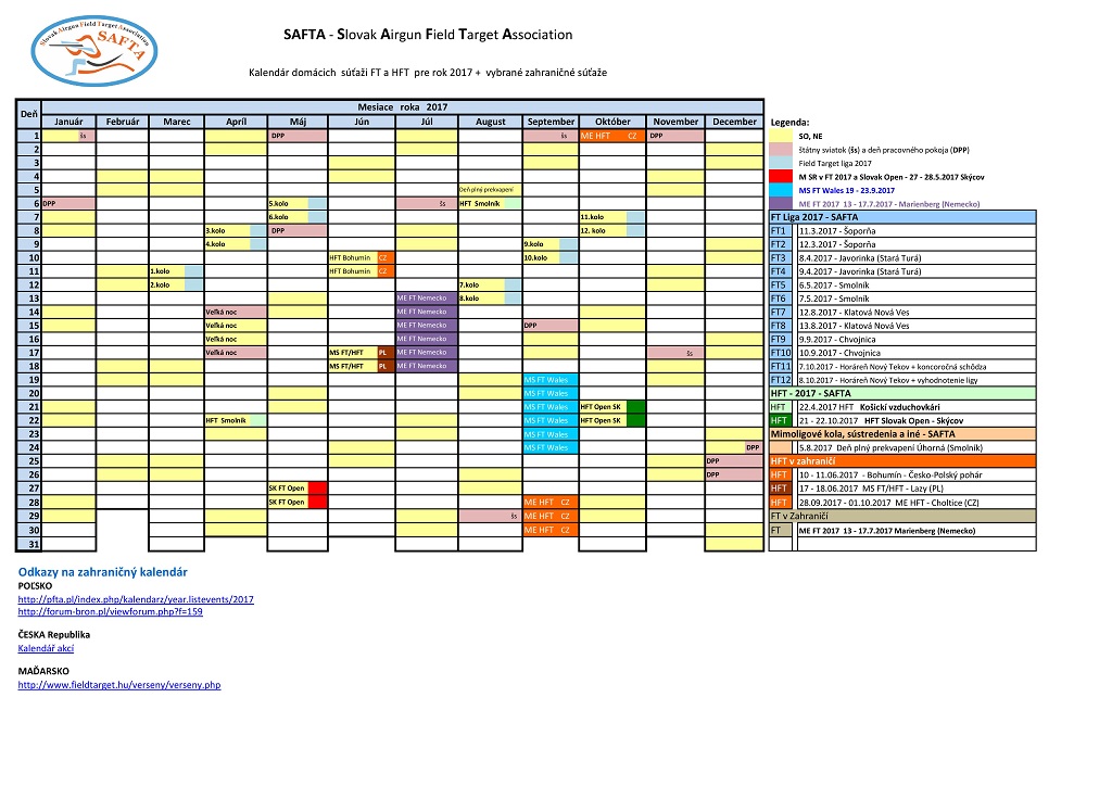 Vykonaná aktualizácia v kalendári. Doplnené akcie HFT Smolník, zmena dátumu na 10 - 11.06.2017 Bohumin. V dokumentoch aktualizované odkazy na zahraničné súťaže a sú doplnené aj v tomto vlákne na začiatku Česko, Maďarsko, Poľsko.