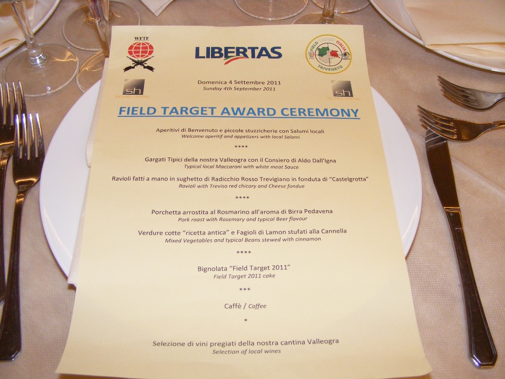 Čo sa ma ale maximálne dotklo a čo Talianom nezabudnem je to, že na gala večeri vyhlasovali a predstavili všetkých "nováčikov" vo Field Target (ktorý už ináč štartovali aj na MS v HU) okrem nás. Asi sme pre nich nezaujímavý obyčajný a Slováci. Vysvetlujem si to takto, pretože všetkým ostatným sa hádzali okolo krku!