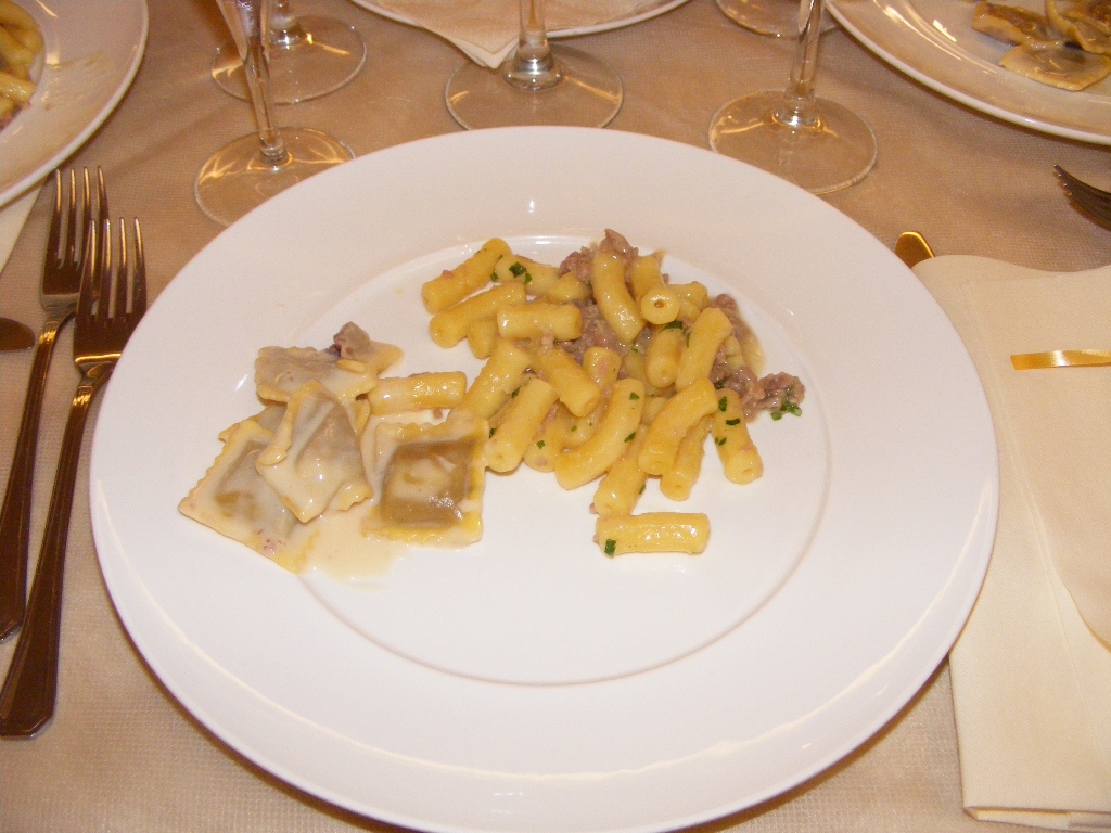 Chvalim taktiez obrovske mnozstvo flaskovej vody ktora boli k dispozicii na trati, len skoda ze tej pizze co rozdavali na obed bolo tak malo alebo niektori strelci jej ziadli viac a inym sa potom neuslo. Ani ta vecera nebola az taka zla - proste FT dieta :-) snazili sa spravit dojem a preto bola servirovana kazdy den ako v nobl restikach tradicnym talianskym sposobom s cestovinami ako predjedlom, aj ked urcite vacsina hladnych strelcov by privitala radsej zavodnu kantinu kde by si kazdy nalozil pri okienku kolko mu hrdlo raci. Tri casnicky kym kazdemu z 200 strelcov pred nosom nalozili cestoviny do taniera tak to kus trvalo a clovek bol potom stale hladny.