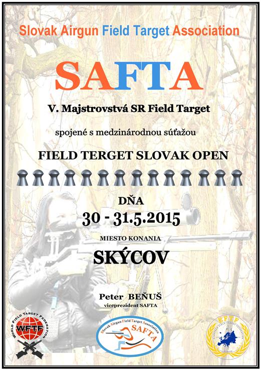 Vážené dámy a páni, dovoľujem si Vás pozvať už na V. Medzinárodnú súťaž Field Target Slovak Open 2015 spojenú s Majstrovstvami Slovenska. Opäť, ako v minulosti, sa súťaž bude konať v obci Skýcov v areáli chaty Breziny 30 a 31.mája 2015 (sobota, nedeľa). Budú postavené dve samostatné dráhy. Vítaní sú všetci, ktorí majú radi túto streleckú disciplínu. Tešíme sa na Vašu účasť.
