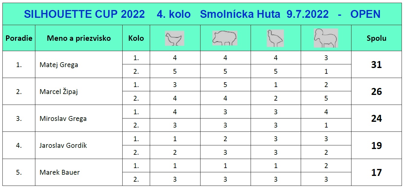 Výsledky 4.kola SILHOUETTE CUP 2022.
