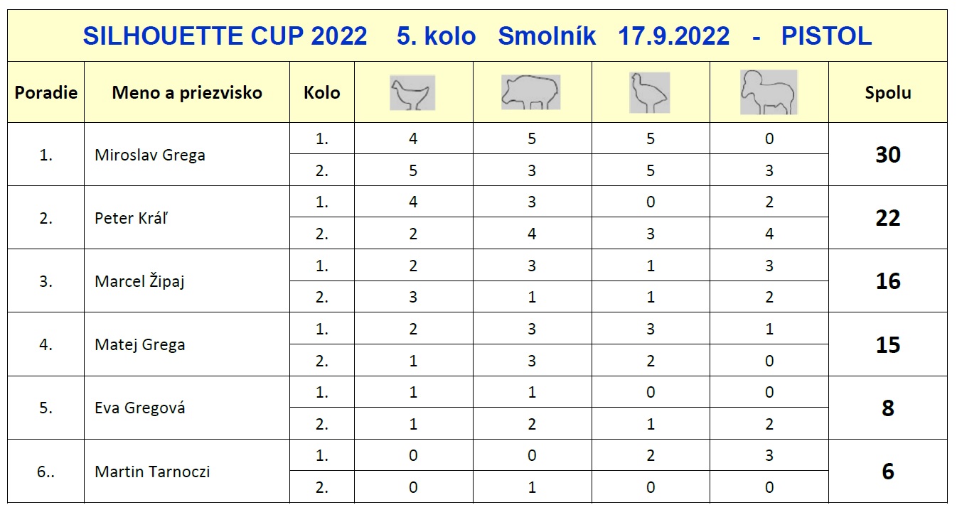 Vážení priatelia, pozývam Vás na 5. finálové kolo SILHOUETTE CUP 2022 v športovej streľbe zo vzduchových zbraní na kovové siluetky.