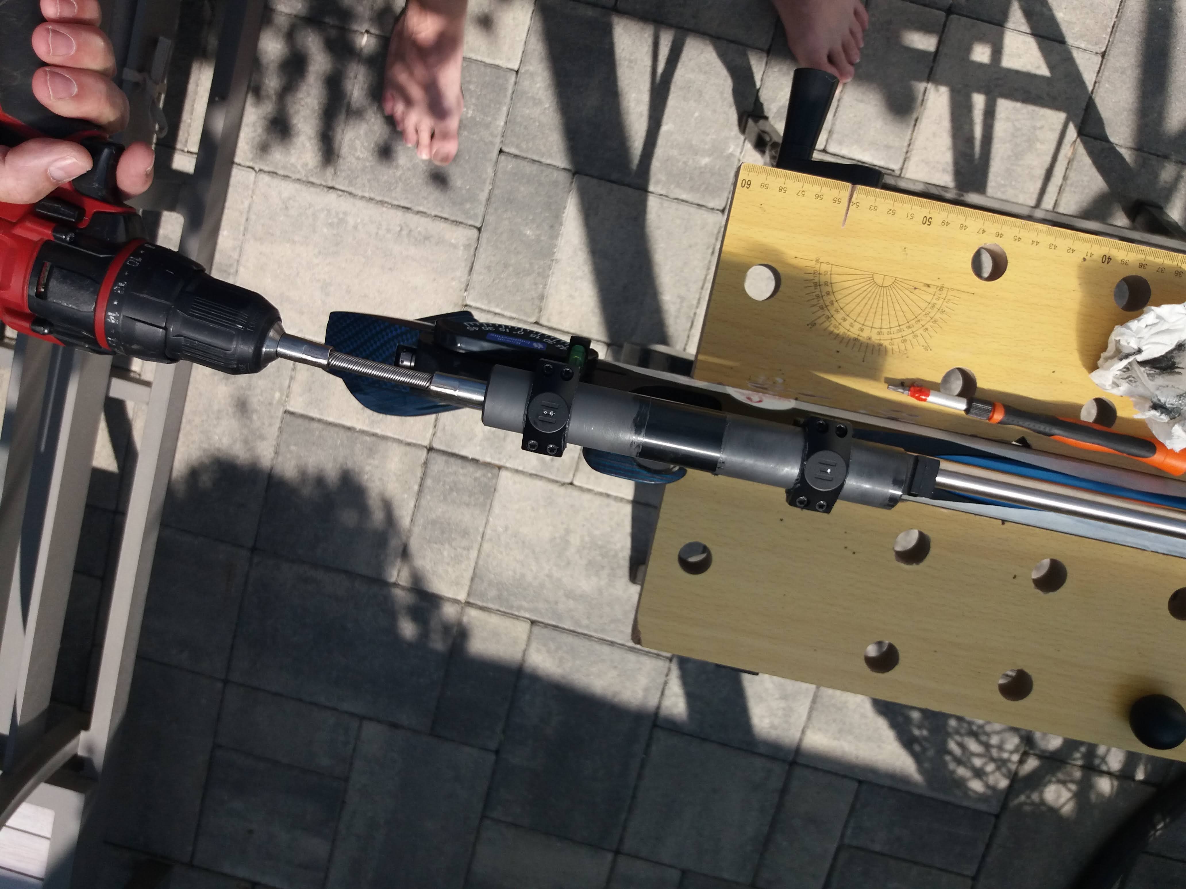 Tak Element po lapovaní sedí naozaj na "milióntinu" ,ten hliník na rozdiel od ocelovej montáže sa ľahko lapoval (cca 5 min). Na začiatok som použil pastu zrnitosti 120 a potom 220. Robil som to zo začiatku ručne a potom ako vidíte s foto ručnou aku vrtačkou na pomalé ot. plynulo a samozrejme so stálym vertikálnym posuvom lapovacieho valca a sústavným jemným rovnomerným priťahovaním skrutiek krúžkov. Prvé foto s čiernymi trnmi sú pred lapovaním a posledné po(vždy jedno foto z boku a druhé z vrchu). Vidieť ešte v spojoch krúžkou elox a aj keď sa to z prvých fotiek ešte so striebornými trnmi nezdalo verte že rozdiel na hrotoch bol "len"0,16 mm ale na prehnutie optiky to úplne stačí