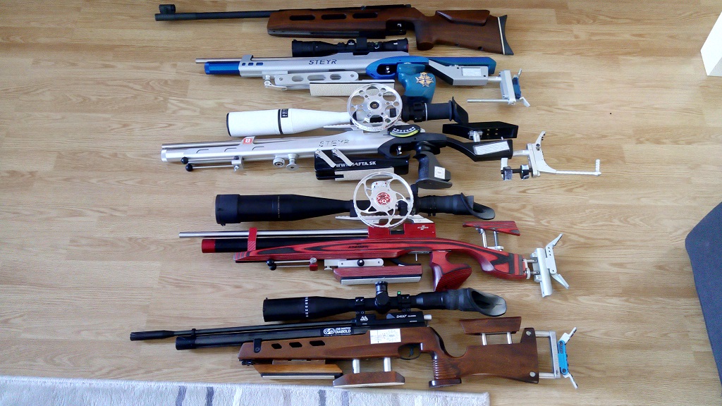 Evanix Blizzard, AR6, U850 Hunter, DU-10 Condor, 2x HW97k, HW100, Daystate GP, Ripley AR5s, Anschütz 9003, Gamo PT-80