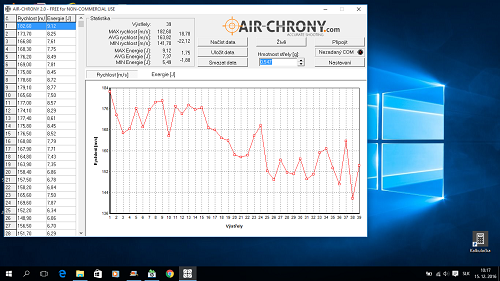 V bytovej teplote som zmeral rychlost a pre predstavu vykon tejto pistolky. Strielal som v rychlom slede co pri co2 nie je idealne, to je vidiet aj z konzistencie, ked som dal dlhsiu pauze bolo to lepsie.