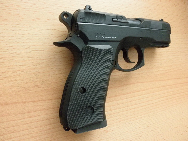 Verná kópia reálneho modelu CZ 75 D compact, so všetkými detailami, vrátane funkčnej poistky. Zbraň je vyrobená na základe zakúpenej licencie CZ Uherský Brod. Jedná sa o CO2 zbraň, na oceľové BB 6mm guličky. Výrobca ASG.