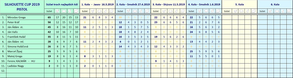 Pripájam aj priebežné výsledky SILHOUETTE CUP 2019 po zarátaní výsledkov zo 4. kola: