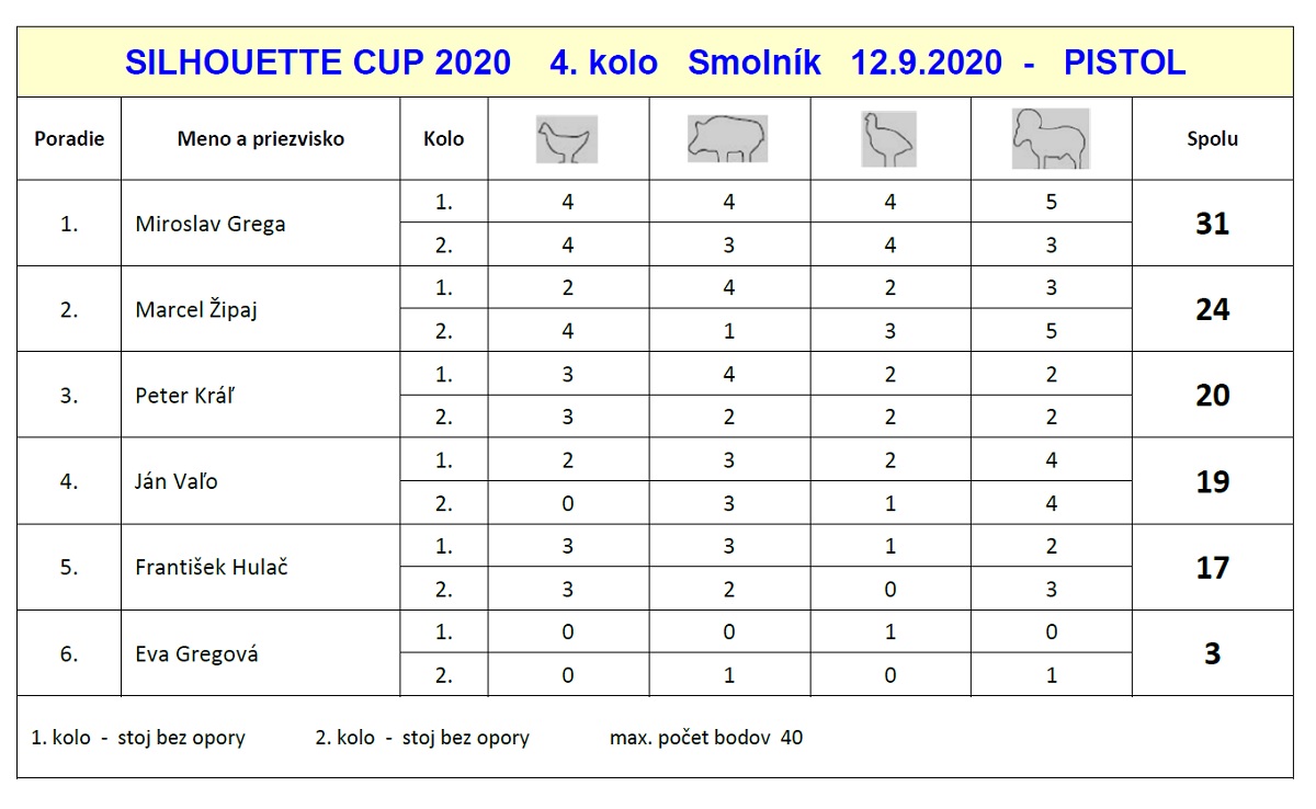 Súťaž : 4. kolo SILHOUETTE CUP 2020 - Kategórie OPEN, PISTOL - Podľa pravidiel športovej streľby na kovové siluety - SAFTA, vydanie 2. z 1.3.2019