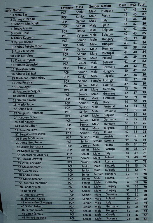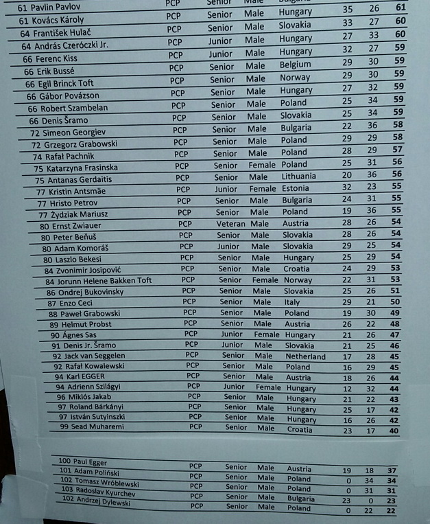 Dobehla má naplno moja lenivosť. Uz minuly rok po Litve bola puska plná piesku, všetko drhlo. Ja som sa venoval všetkým puskam okrem tejto. Vždy strieľala super, tak išla bez údržby. Uz v sobotu som mal pár výstrelov takých, že 3x primerané, kríž ako pribity v killzone a spadlo to 20 cm pod sklopku. Pripisoval som to dazdu a veľkým klapkam ktoré padali zo stromov. V nedeľu prvá rana na 50 m, spadla, tak si hovorím, že dnes to pôjde, potom 5 ran úplne dolu pod sklopku. Zvuk pri vystrele úplne divný. Pali mi dal typ na stabilizator. Bolo to tak. Niekedy nezostal zaveseny, niekedy zostal aj po vystrele. Pri chrone som sa zdržal a strielalo mi to od 175 až do 239 m/sek. Len úcta k organizatorom a spolu strelcom má prinútila pretrpieť to do konca.