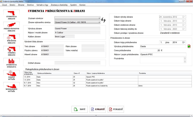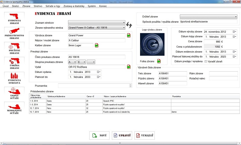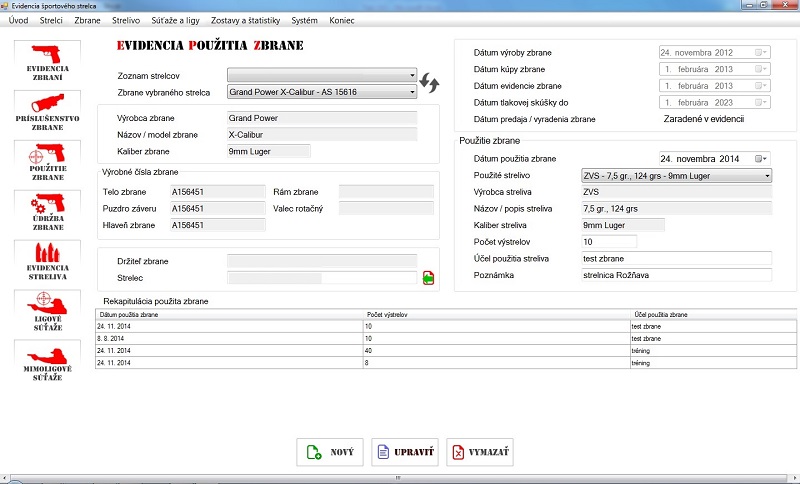 Evidencia použitia zbrane•Evidencia použitia zbrane (tréningy, súťaže, nástrely...)