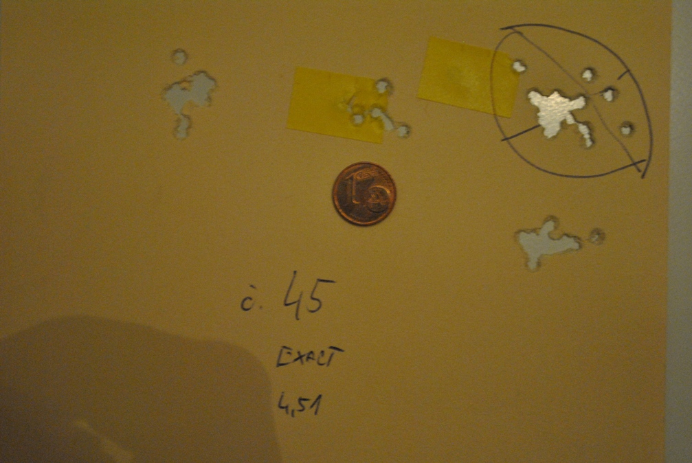 Neviem, ci by moj prispevok nebol vhodnejsi do vlakna o strelive, ale skusim to dat sem, lebo sa strielalo zo Steyra. Vyber streliva prebehol v piatok v tunely vyrobcu streliva JSB. Navsteva v JSB mi dala vela. Okrem vyberu streliva sme sa rozpravali o potrebe cistenia hlavni u Steyra. Co sposobuje zhorseny sustrel mi bolo predvedene potom na mojom, ktoreho hlaven som poriadne necistil nejaky ten rok, okrem vystrelenia par kusov filcovych valcekov. Ale postupne. JSB sme navstivili vdaka aktivite nasho prezidenta, ktora vznikla na zaklade Simoninho vysledku na MS v Litve. Pocas testu p. Prazan prisiel na to, co riesim dlhsi cas a co ma trapilo aj v Litve. To su nevysvetlitelne ulety. Nas kratky Steyr (Emilko) je velmi citlivy na vkladanie diabolky do hlavne. Nevieme, ci vstup upravil povodny majitel, alebo je to tak original, ale diabolku je treba vkladat zlahka, rovno s osou vyvrtu. Potom to striela uplne dokonale. Skusali sme rozne strelivo, ktore sa momentalne vyraba v cal. 4,51; 4,52; 4,53; Exact aj Expres. Expres Emilkovi nesedel, co mi nevadilo, nemusim robit novy tahak. Pri 4 druhoch streliva bol dosiahnuty sustrel CTC okolo 10 mm, co je velmi dobry vysledok. Na zaver bol problem vybrat strelivo. Ako hovoril p. Prazan, casto byva pri zbraniach ktore ludia k nim nosia opacny problem, vybrat zo zlych sustrelov ten najmenej zly. Ktore strelivo sme vybrali si necham pre seba. Vzdy su strielane dva sustrely, prvy horsi je po zmene streliva a druhy ked uz je hlaven zabehnuta s danym strelivom. Pre porovnanie som pridal mincu jeden cent. Strielalo sa na vzdialenost okolo 46 m.